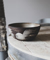 The Kaze Bowl is crafted in white stonware and coated in dark stoneware with bold porcelain slip brushstrokes across the exterior.